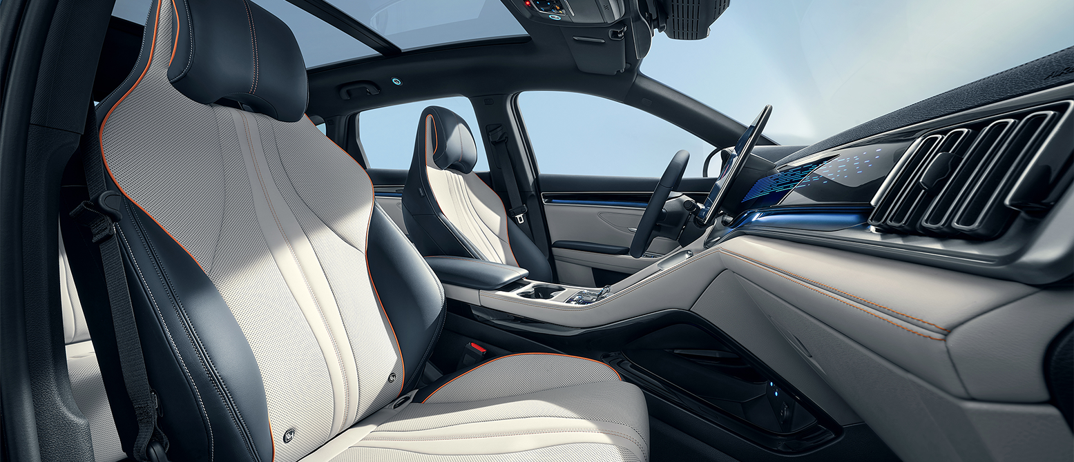Dinaminės sėdynės:Priekinės sėdynės pasižymi ventiliacijos ir šildymo galimybėmis, elektriniu reguliavimu ir atminties funkcijomis, kurios leidžia lengvai pasirinkti pageidaujamą sėdėjimo padėtį.